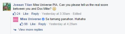 Though Pia denied that she and Dr. Mike was in a relationship, the issue was even hyped when the doctor, shared on Snapchat a photo of him and Wurtzbach lying on bed together.